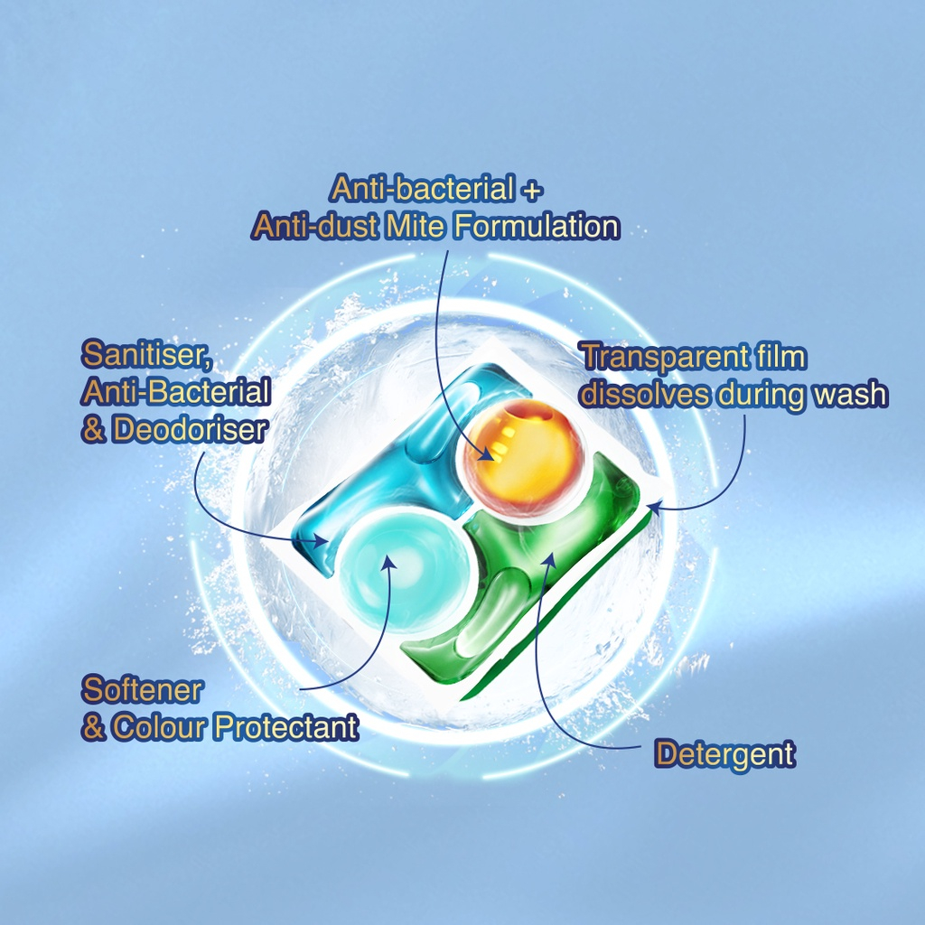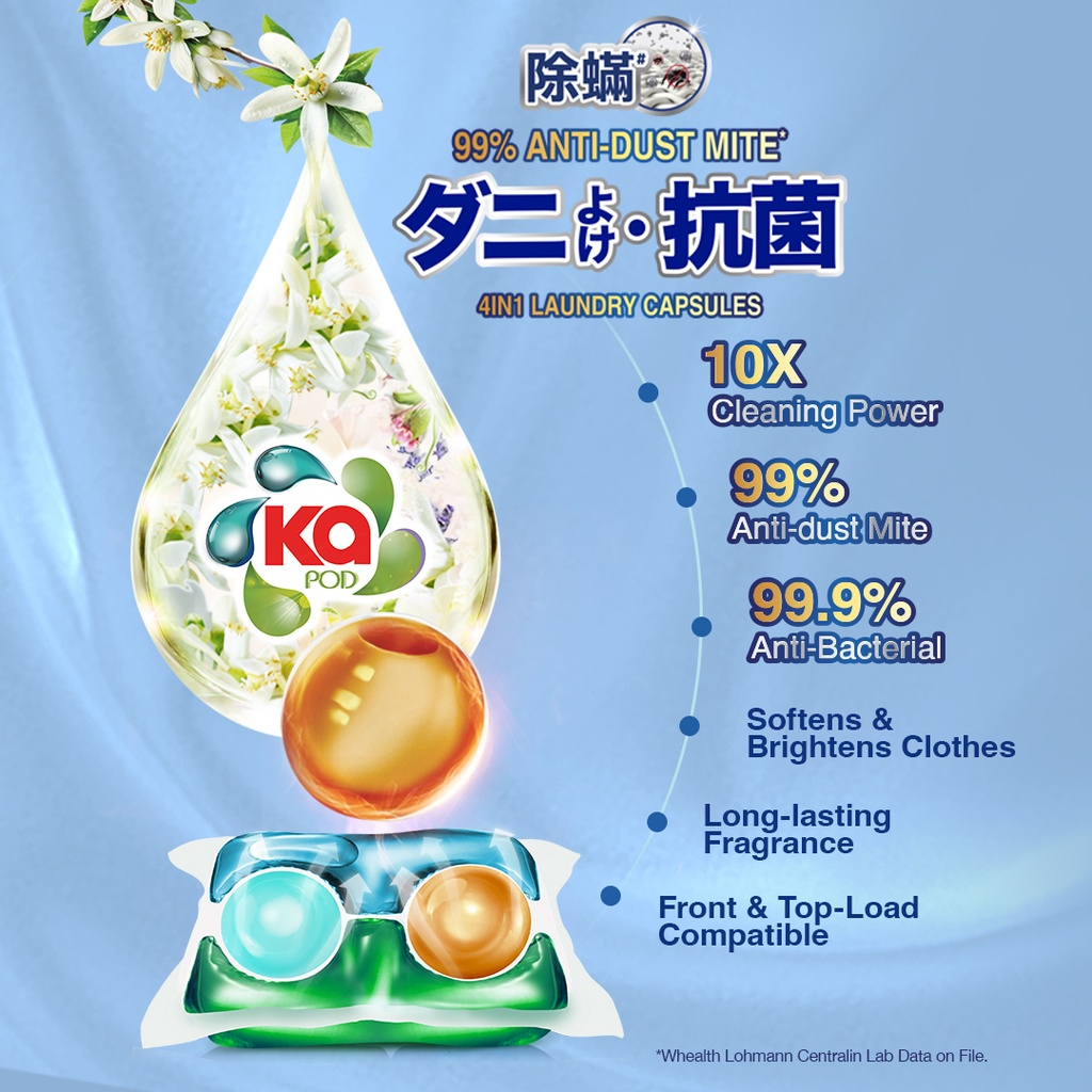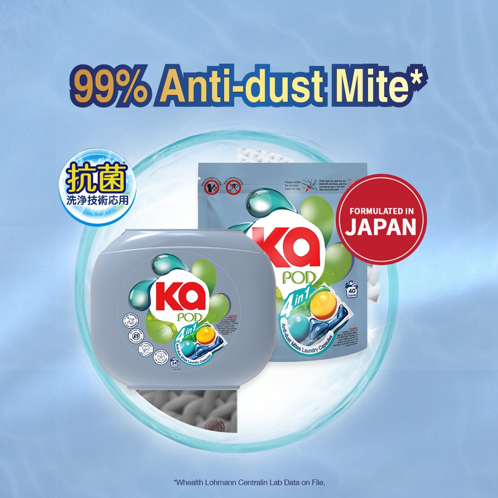 [Free Delivery] KA 4in1 Laundry Capsules Refill 40 Pods x 12 Packs (480pods)– Anti-Dust Mite