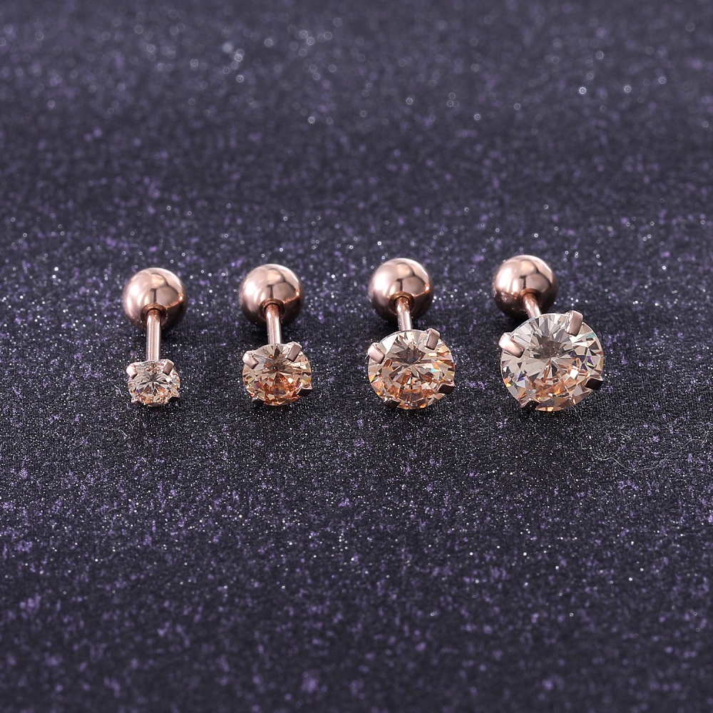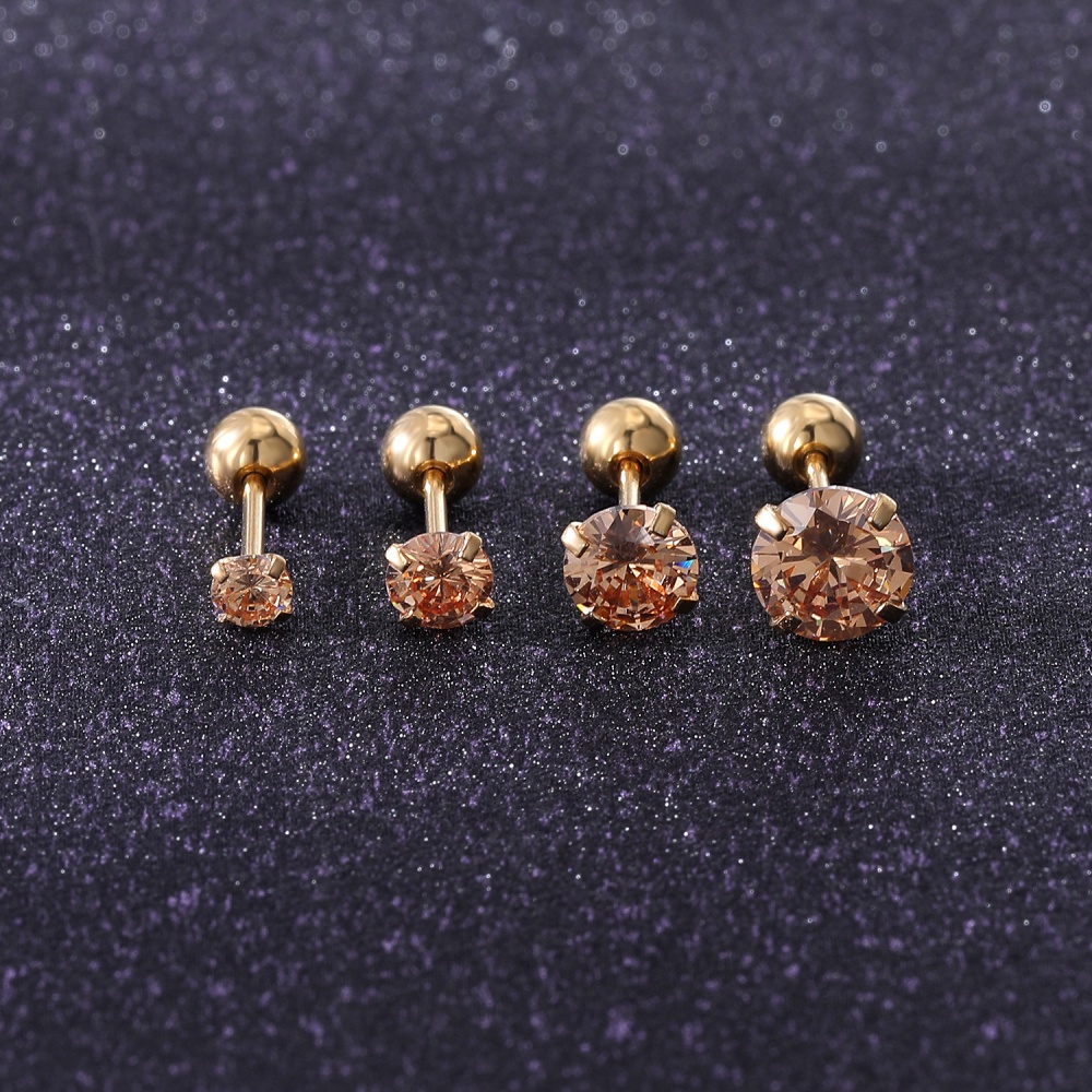 1 Pc 3/4/5/6MM Stainless Steel Round Stud Earrings Gold Crystal Cartilage Stud Earring Tragus Conch Helix Piercings