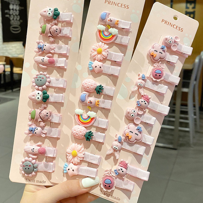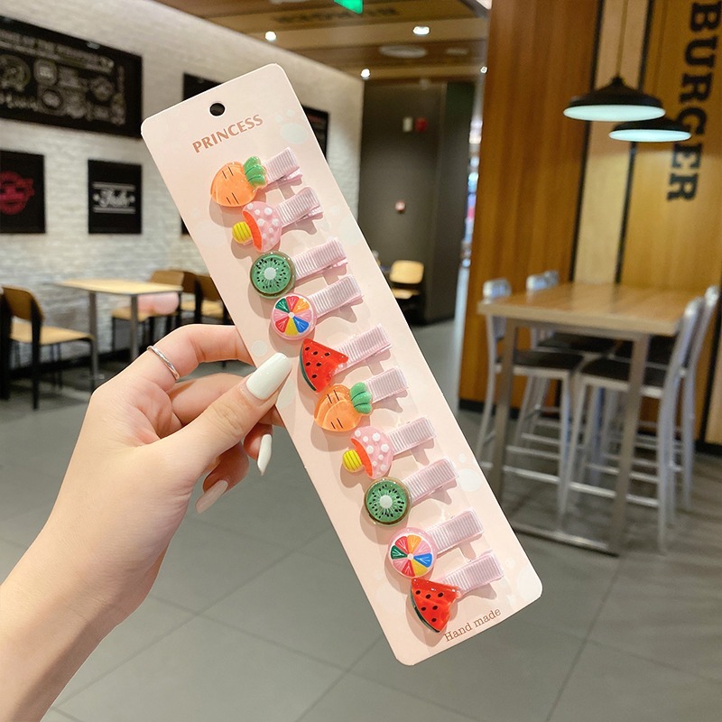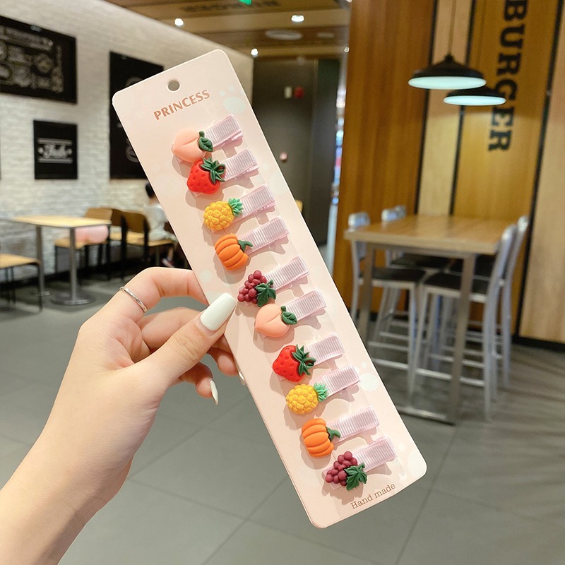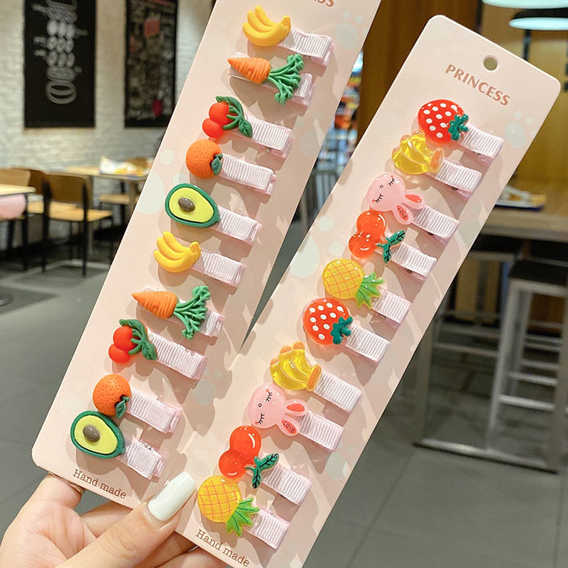 10 Pcs Baby Girl Cute Flowers Fruits Hair Clip Set Don't Hurt Hair Cartoon Hair