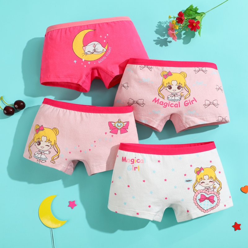4 Pcs Kids Girl Panties Soft Cotton Baby Girl Underwear Boxer Cute Cartoon New Design Underpants
