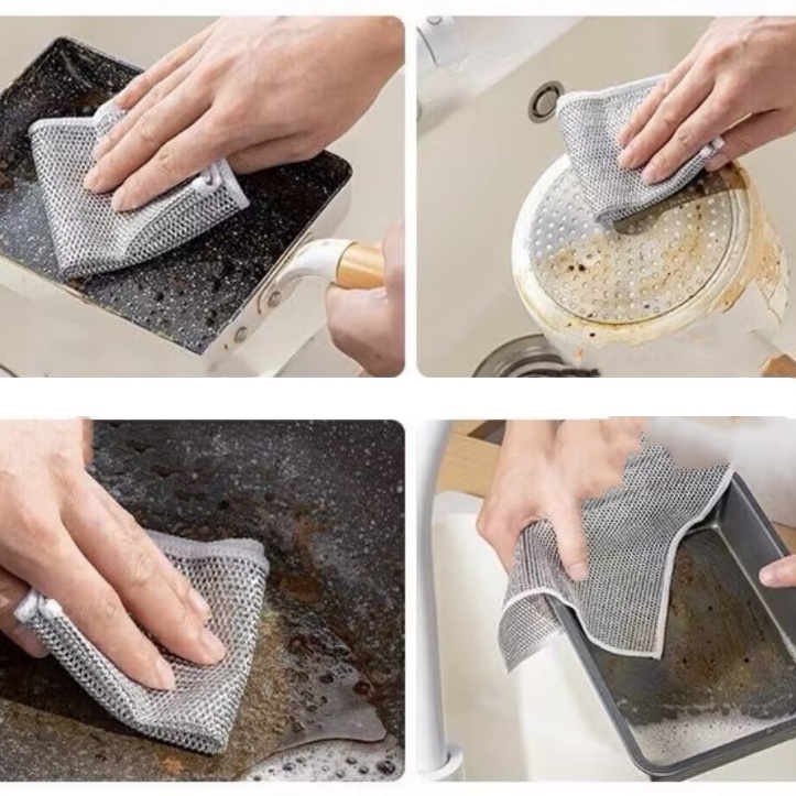 5 Pcs Metal Wire Cleaning Cloth Mesh Non-oiled Wipe Kitchen Stove Dish & Pot Cleaning Cloth Instead of Steel Ball