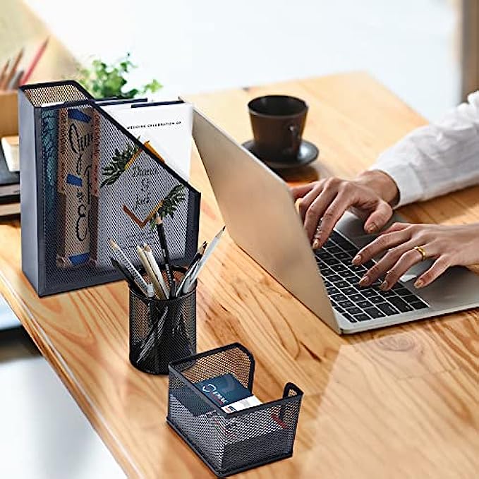【6 Pieces Desk Organizer Set】- Messy? Get rid of the clutter and expand your mind space. Whether you seek desk organizers for office or home, our desk organizers and accessories - Collecting Tray with 3 Compartments, Paper Tray with handle, Pencil Cup, Sticky Note Holder, Magazine Holder and Business Card Holder can meet your all needs