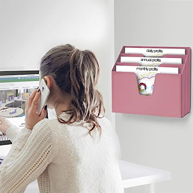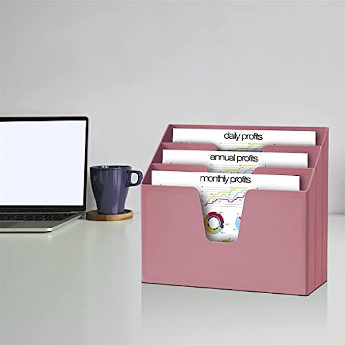 Acrimet Horizontal Triple File Folder Holder Organizer (Solid Pink Color)
