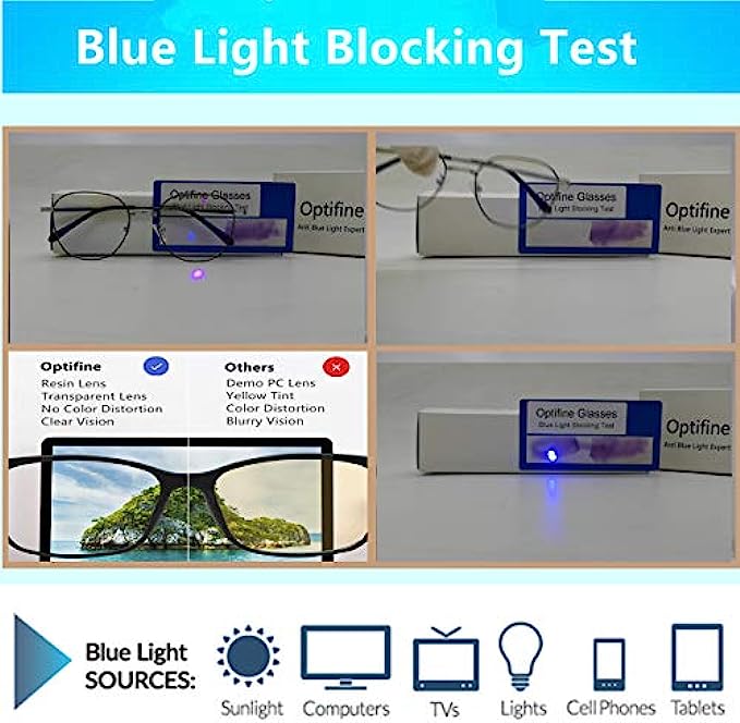 ? ANTI BLUE LIGHT -- Staring at a computer screen all day can cause headache and nausea, Optifine Glasses will block 97% hurmful blue rays out, to minimize Digital Eye Strain caused by harmful blue light emitted from digital screens