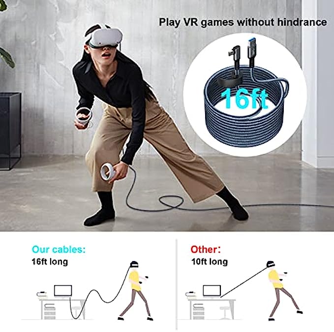 【What You Get】Package is including 1* 16FT quest link cable. Welcome to contact us if you have any questions, we will solve it for you as quickly as possible.