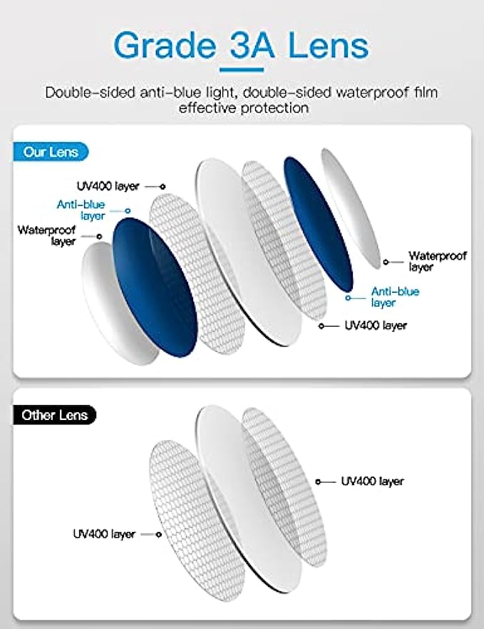 • ☀35% ANTI-BLUE LIGHT.Can effectively block harmful blue light from TV, mobile phone, computer, etc.Beneficial blue light can pass through