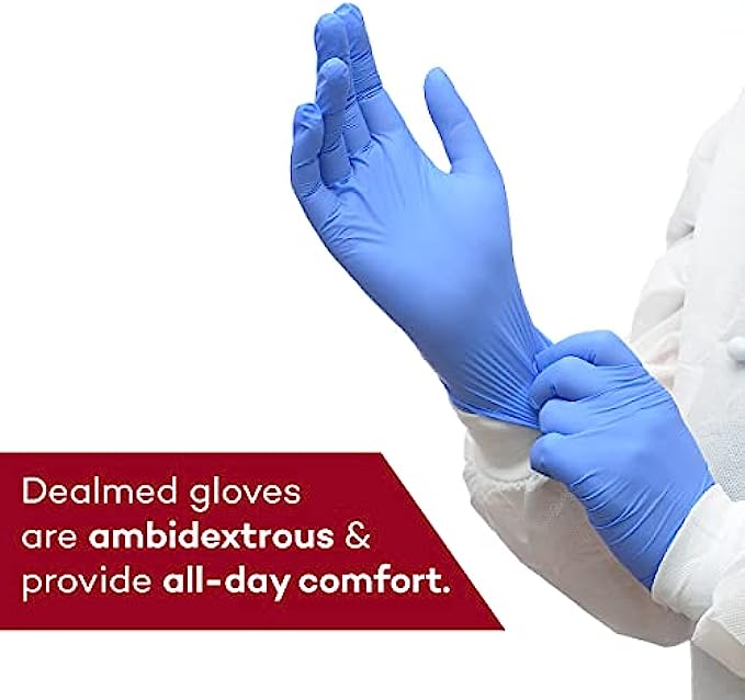 OPTIMAL COMFORT – Dealmed nitrile gloves are designed with a highly elastic fit and beaded cuffs to provide a snug, secure fit when wearing for extended periods of time. Additionally, they offer tactile sensitivity for delicate patient care.