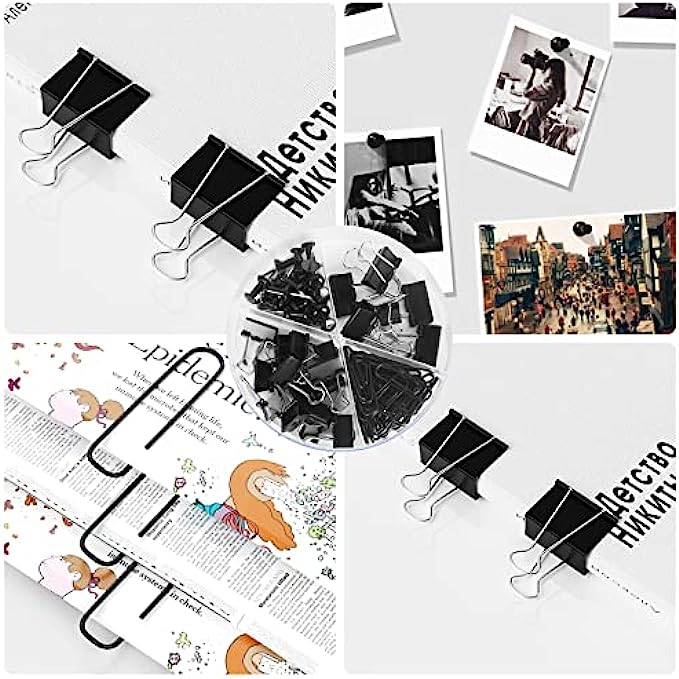 【All in one Desk Organizer Set】: ( 9.65 x 5.75 x 5.75inches) All-in-one black desk organizers has 7 compartment (6 parts + 1 large sliding drawer) and 1 pencil holder and 72 desk Accessories (7pcs large binder clips + 15pcs small binder clips + 20pcs push pins + 30pcs paper clips) for sorting and storage.