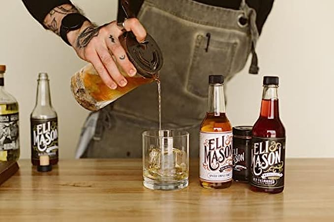 Eli Mason Spiced Old Fashioned Kit - Old Fashioned 10oz + Spiced Simple Syrup 10oz with Jigger, Spoon, and Ice Mold - Perfect for DIY Mixologists