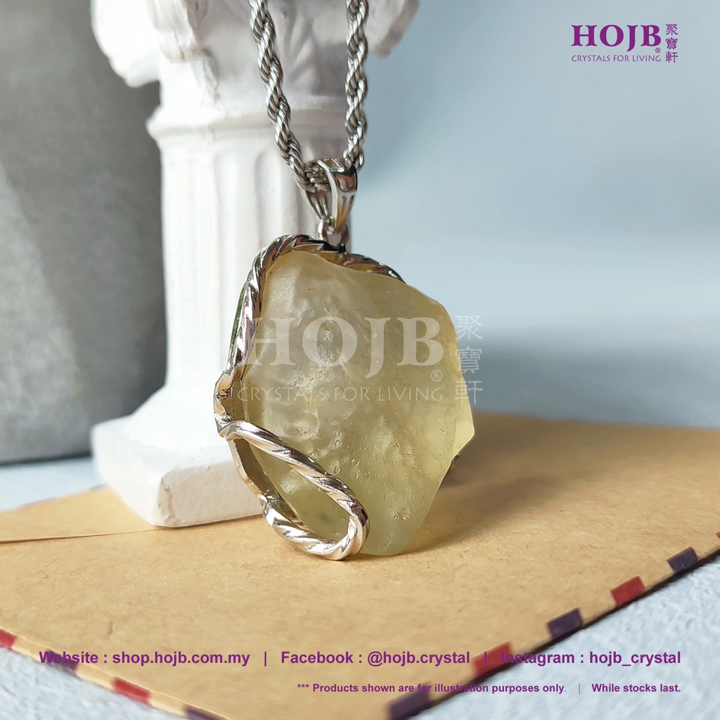 HOJB Authentic Libyan Desert Tektite Rough Stone S925 Pendant 25x32mm (17.1G) Jubaoxuan Pure Meteorite (Gold Meteorite) S925 Silver 25x32mm (17.1G)