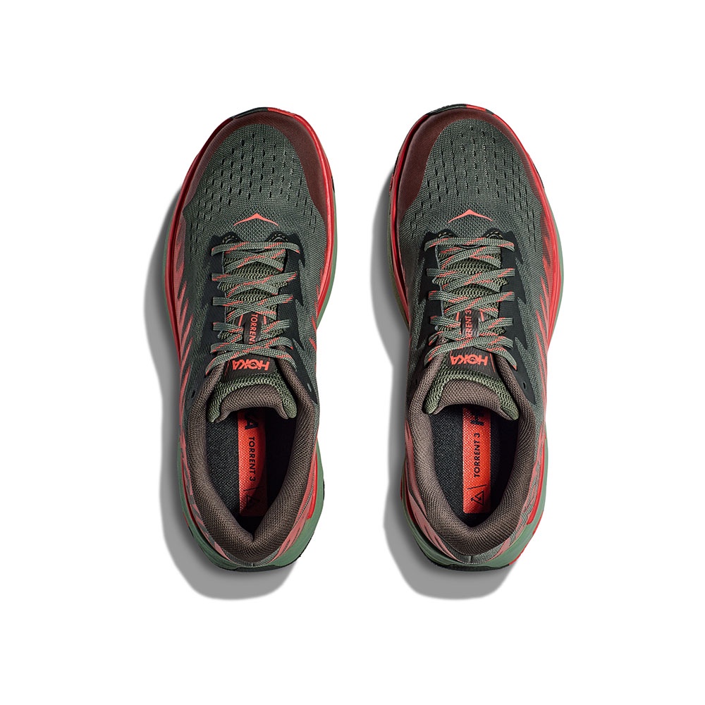 Hoka Men Torrent 3 Trail Running Shoes - Thyme / Fiesta