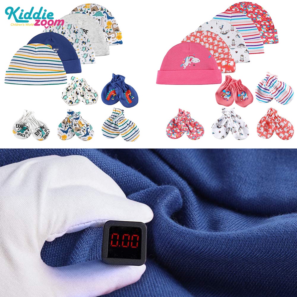 Kiddiezoom Newborn Cotton Anti-Scratch Gloves / Baby Breathable Hat / Glove and Hat Combination Set 2022 New