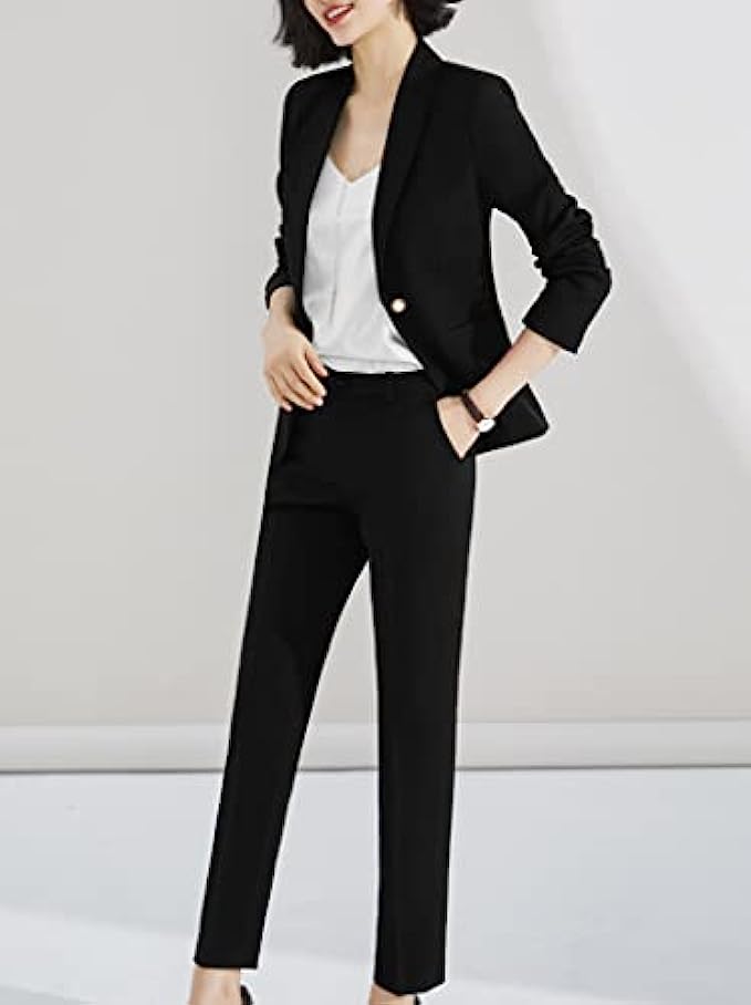 100% Polyester Imported Button closure Hand Wash Only 【Fabric】- Made of high quality 90%polyester & 6% spandex & other fabric.The lining is 100% polyester. 【Top】-Fashion notched lapel,and comfortable thick shoulder pads.Fake chest pocket decoration.Durable double breasted button.Practical and real front pockets with covered.Classic long sleeve,simple cuffs with exquisite button decoration,unique solid pattern design,waisted,regular and neat blazer hem. 【Buttom】-Straight leg pant,stick button with zipper closure,belt loop design,functional slant pockets.