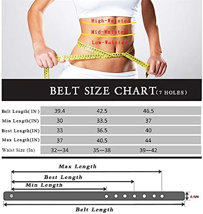 • Length: 39.4in(100cm), Fit for waist size: 32-34in(82-88cm), Width: 0.9in(2.3cm), Buckle Size: 1.3in*1.4in(3.3cm*3.5cm) Package Includes: 2*Belt + 2*velvet bag. The highly cost-effective Selling in multiple belts can satisfy your daily replacing needs.Each belt is wrapped independently in velvet bags, and it's the best choice for giving gifts to your family or friends at festivals.