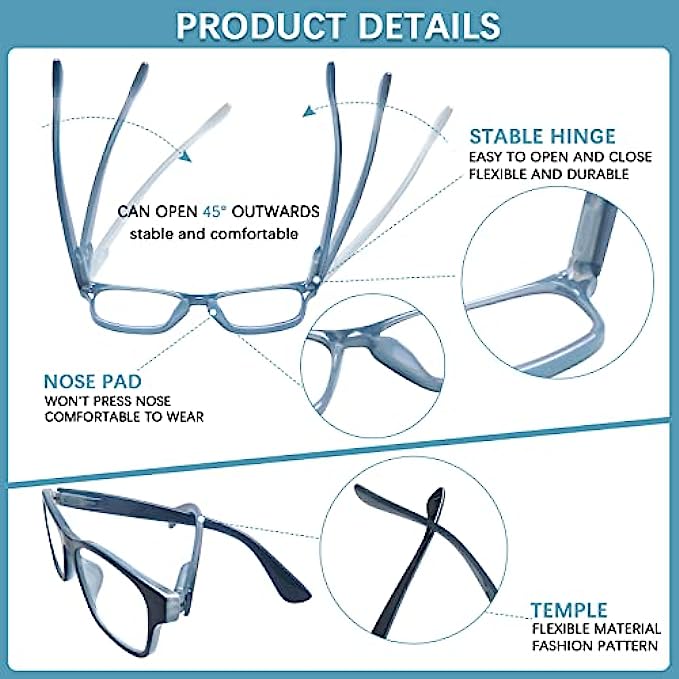 Ronecool 5 Pack Reading Glasses Men Women Spring Hinges Comfortable Glasses for Reading