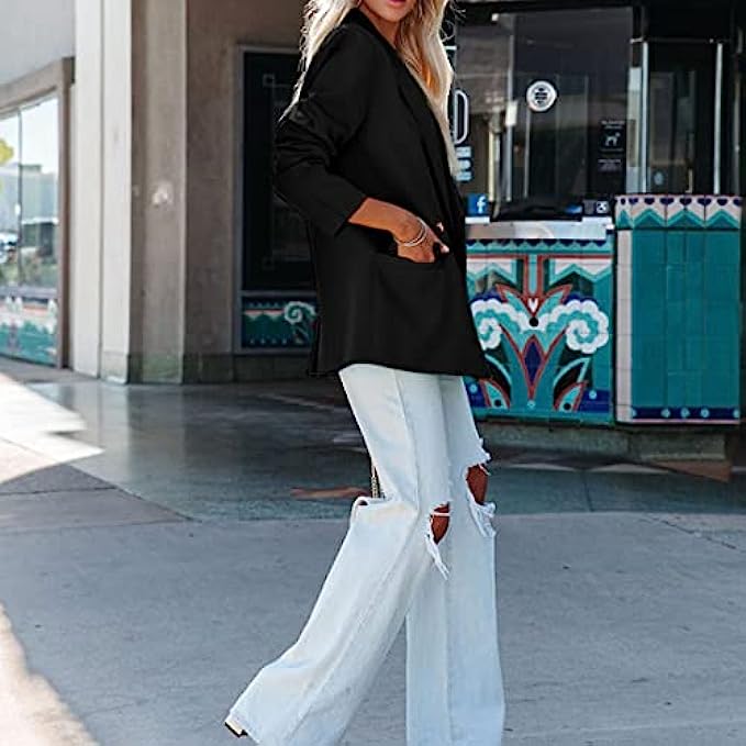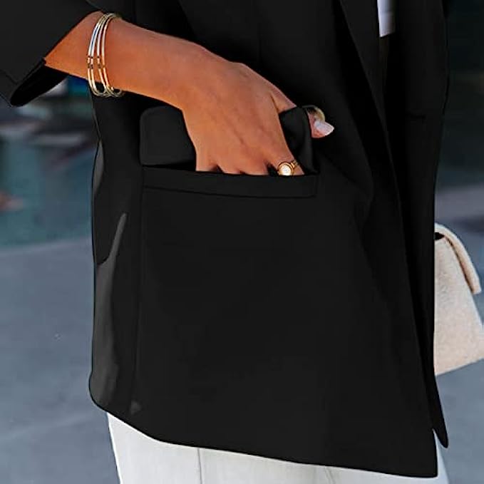 SYOT Women Casual Elegant Lightweight Solid Color Lapel Blazers Open Front Long Sleeve Work Office Jacket Blazer with Pocket