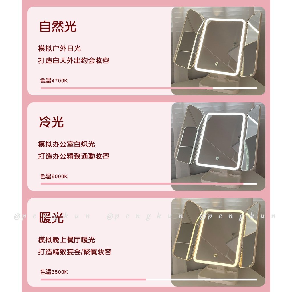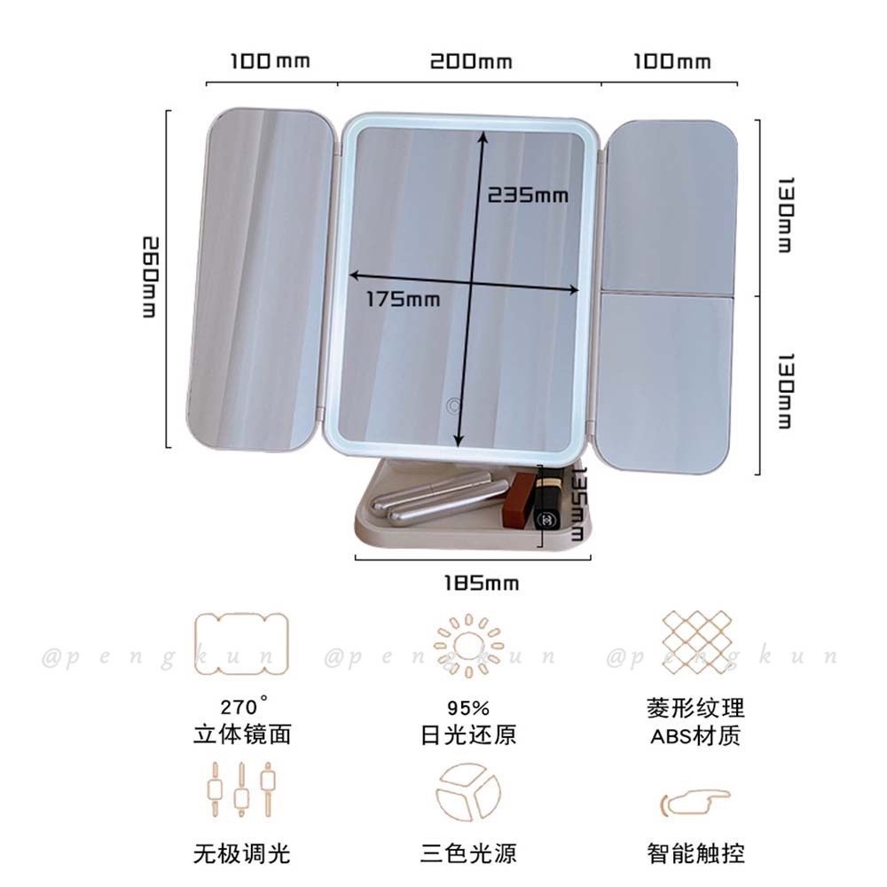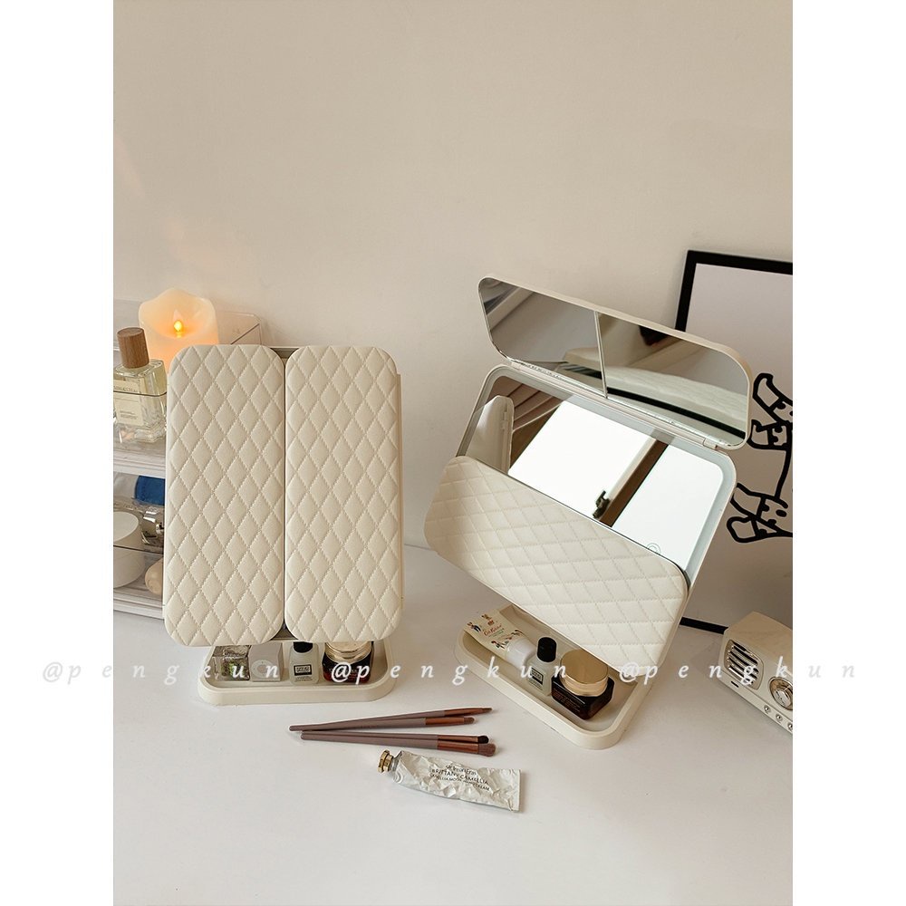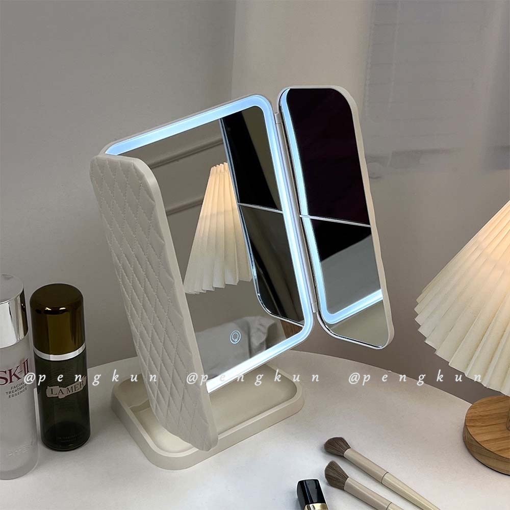 Shell Double Door led Makeup Mirror With Light Storage Box Integrated Desktop Foldable Adjustable Student