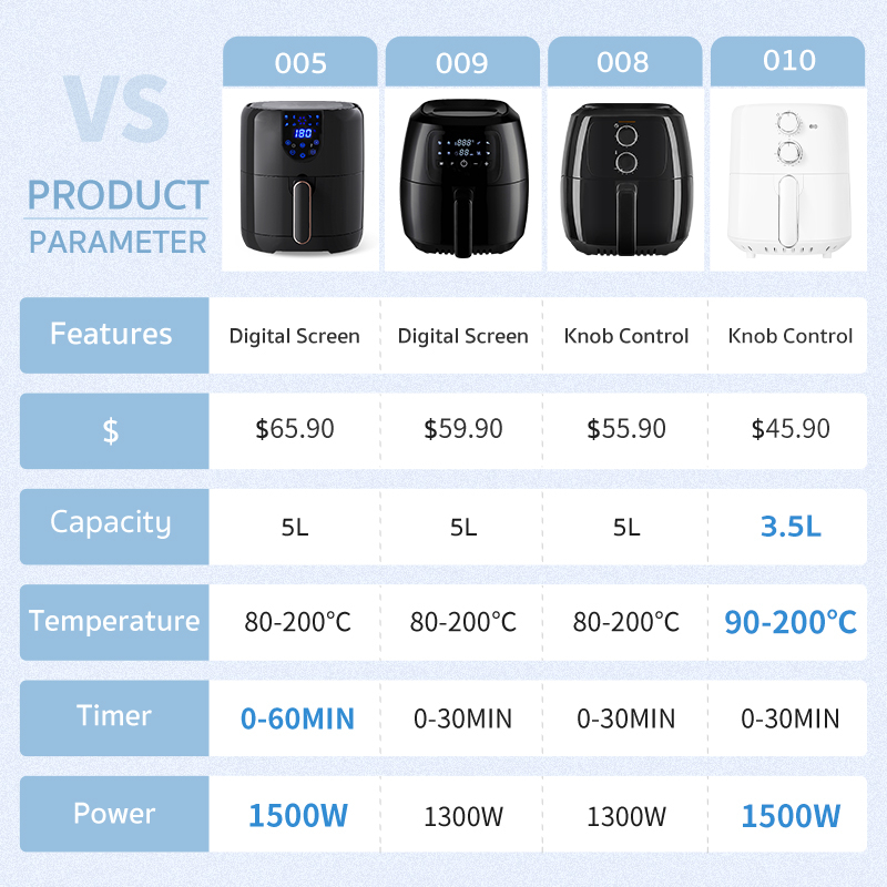 Simplus Air Fryer 5L/3.5L Nonstick Detachable Basket 1500W Small Size Rapid Heater Oil-free Dehydration Easy Operation