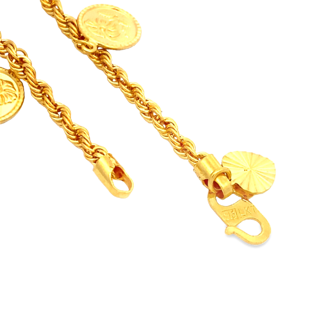 Top Cash Jewellery 916 Gold Dangling Flower Rope Bracelet