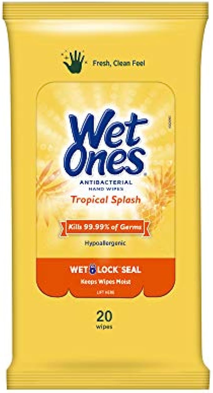Wet Ones Antibacterial Hand Wipes, Tropical Splash Scent, 20 Count (Pack of 10)