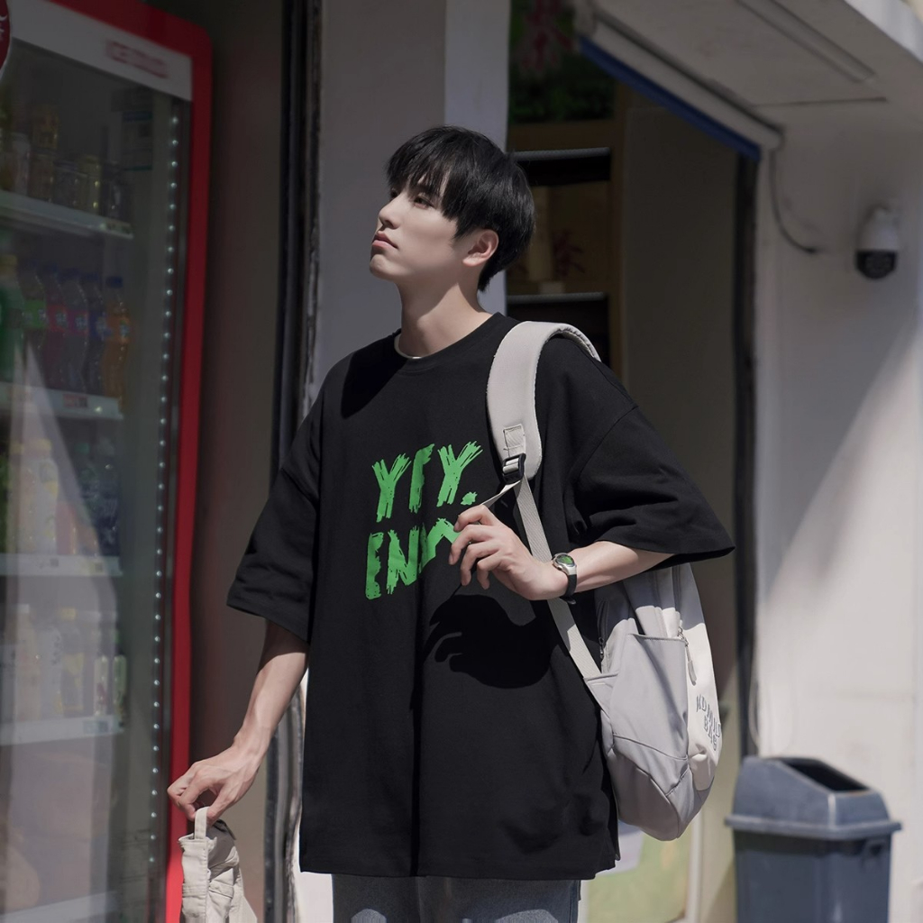 Zaer 短袖t恤 下半身失蹤 美式復古短踢 男女同款 大尺碼oversize 上衣 字母印花 夏季寬鬆落肩休閒 高街