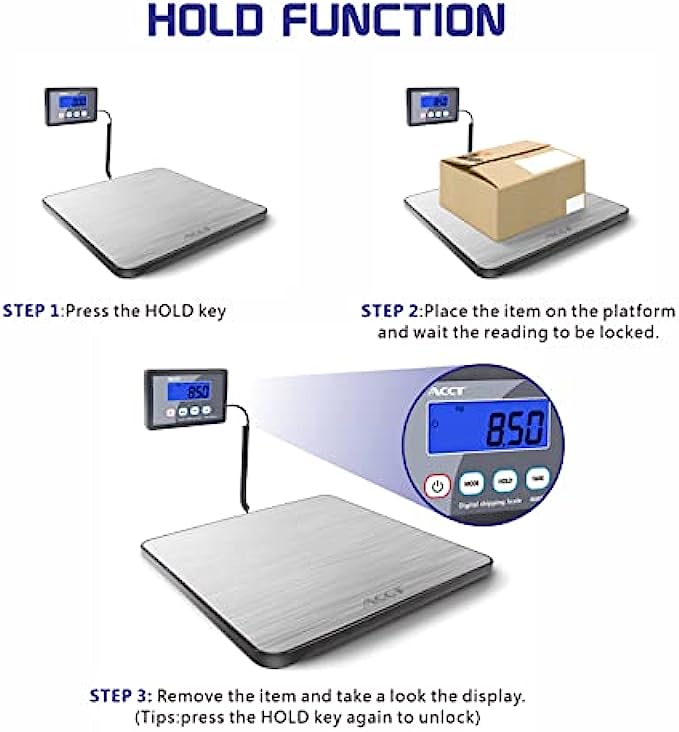 ACCT Postage Scale 400lb, mail scale, Digital Postal Scale with hold /auto-off/tare function, shipping scale for packages/small business/luggage/office, heavy duty scale with batteries & power ada