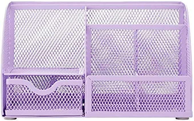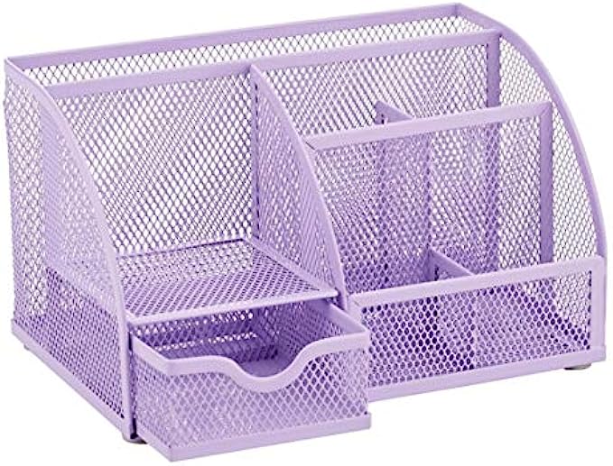 Annova metal desk organizer with seven compartments, including one pull out drawer;