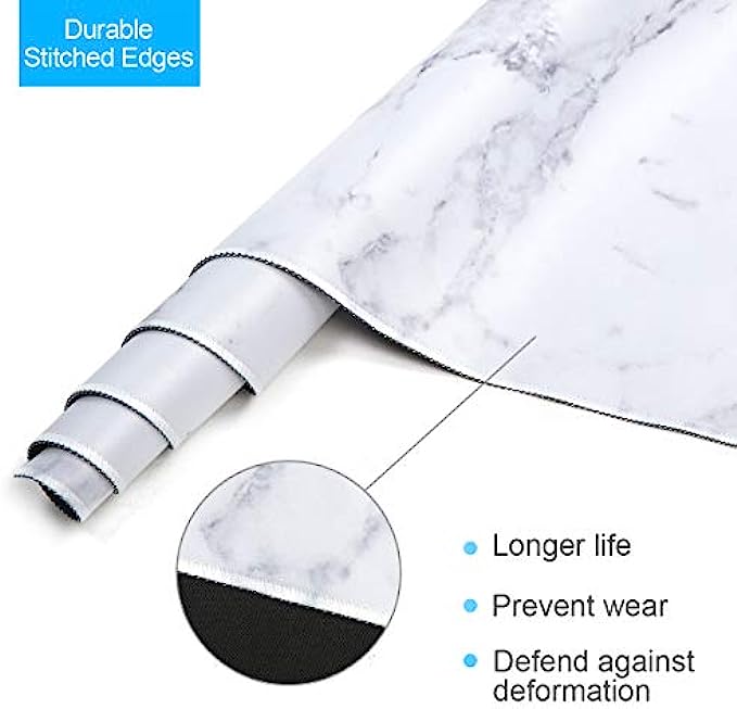 【Durable Stitched Edges】The latest stitching technology ensures that the desk mouse pad will not wear or deform during use. Stitched frame ensures it doesn't fray or fall apart like other desk mouse pads. Relax to use it.