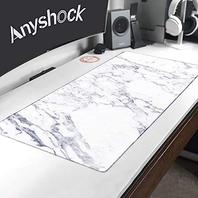 Anyshock Desk Mat, Extended Gaming Cute Mouse Pad 35.4" x 15.7" XXL Laptop Beauty Mousepad with Stitched Edges Non Slip Base, Waterproof Computer Desk Pad for Office, Home, Girls, Men(White