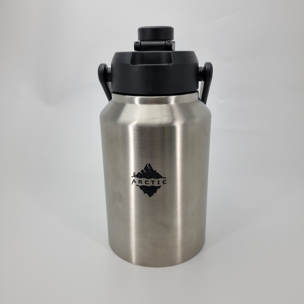 Arctic Gallon Jug | Thermalware sweat free tumbler water bottle workout spill proof | Black silver | 1.89L & 3.79L