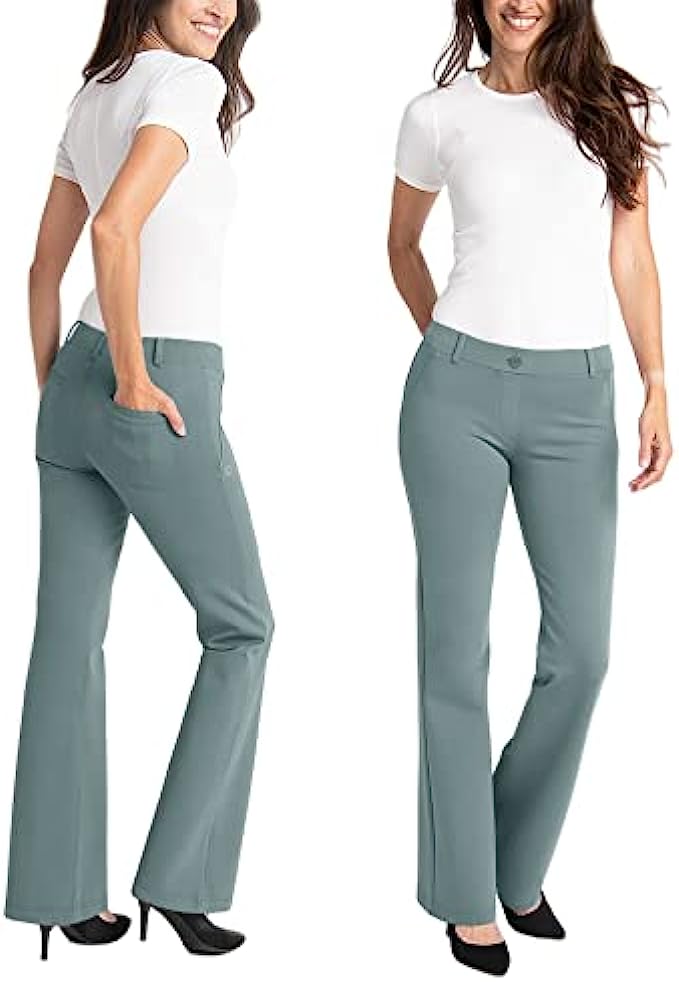 Aurgelmir Women's Flare Bootcut Yoga Dress Pants High Waisted Workout Office Wide Leg Pants with Pockets