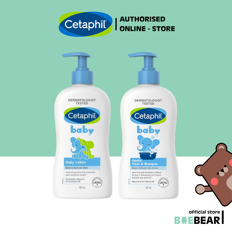 Cetaphil Baby Gentle Wash and Shampoo I Daily Lotion (With Shea Butter) 400ML | Baby Massage Oil 200ml [Baebear.sg]