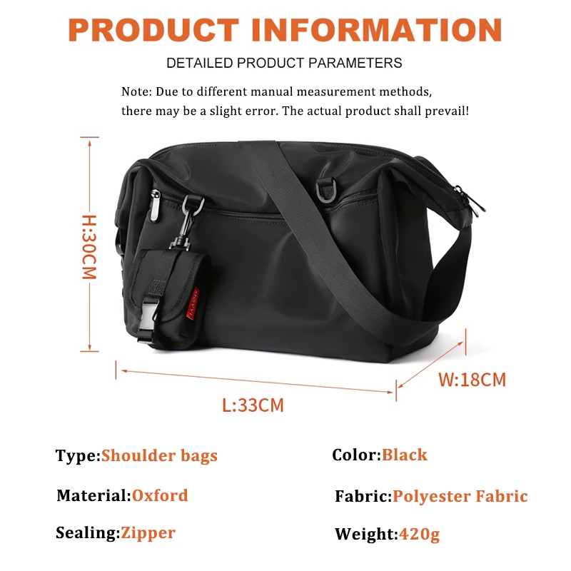 Crossbody Bag Men 20L Messenger Bag Men Shoulder Bag Outdoor Unisex Casual College Student Water Resistant Shoulder Bag