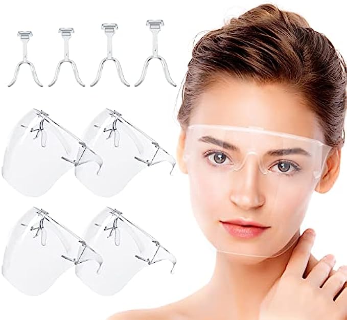 • 【Face Shields with Glasses 4 Pack 】: Face shield mask comfortable,stylish, and sanitary premium protective face shield visor glasses. Made with durable scratch-resistant thick polycarbonate plastic. face sheild/goggles masks with shields plastic mask shield face shield glasses plastic shield