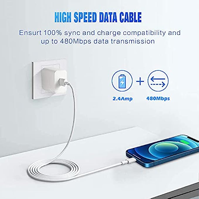• Faster Charging & Sync: 20% Faster than other iPhone charging cords - After long-term testing for IOS lightning cable, we selected four-core higher quality copper wires to make, which makes charging faster and more stable. You can enjoy fast charging [2.4A] and high-speed data transferring [480Mbps].