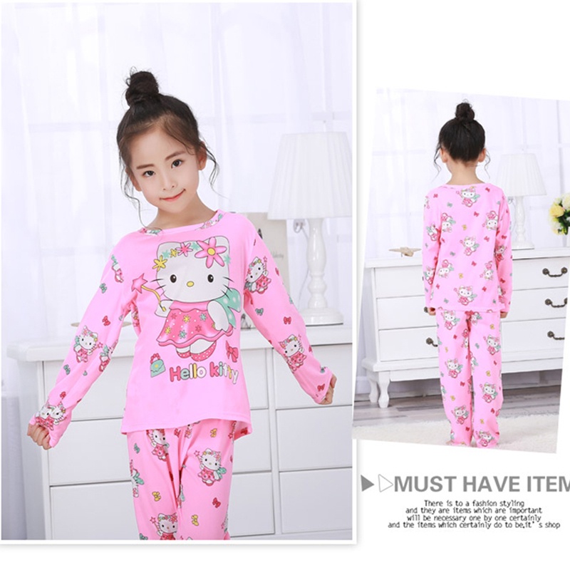 Kids Pyjamas baju tidur budak perempuan Cute Cartoon Printing Children Sleepwear Boy Girls pajamas Long Sleeve Pyjamas kids dress