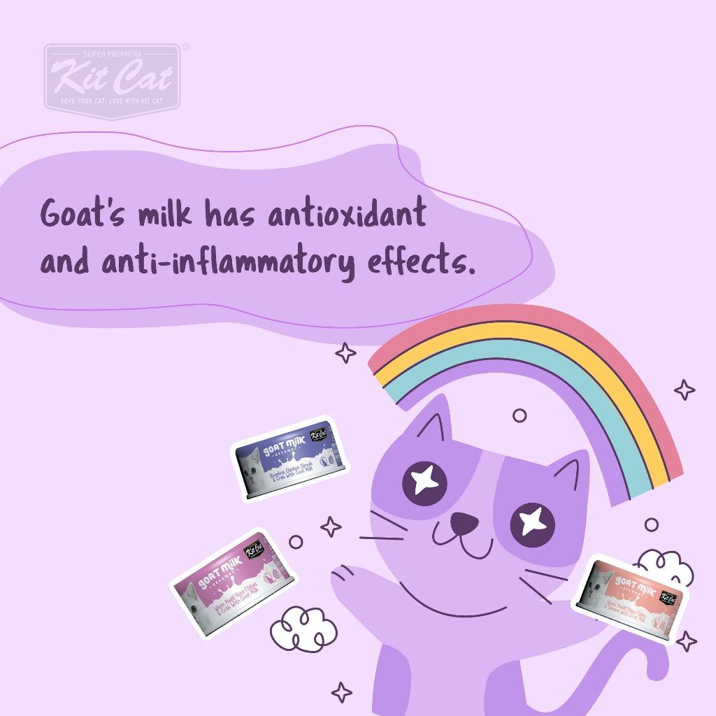 Kit Cat Goat Milk Wet Food 70g - Nutritious Gourmet Flavors, Decreases Inflammation, Good Digestion