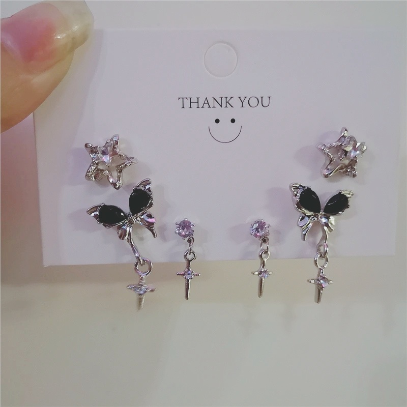 Korean Style Heart Silver Earrings Set Butterfly Pearl Zircon Stud Earrings for Women Fashion Jewelry Accessories