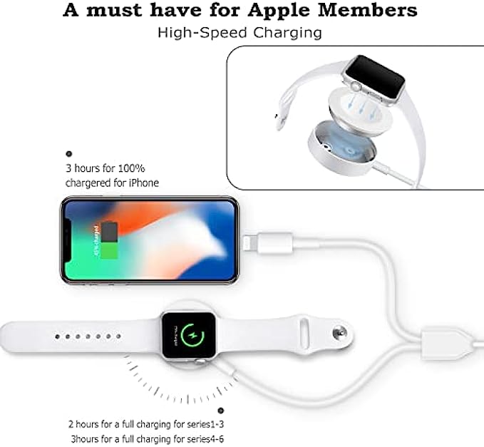 • ❤Original Charging Speed: Watch charger provides a fast initial charging speed for your Watch about 2.5 hours. This phone charger can fast charge your phone in less than 3 hours. Note: It does not charge through metal or watch cases thicker than 4mm.