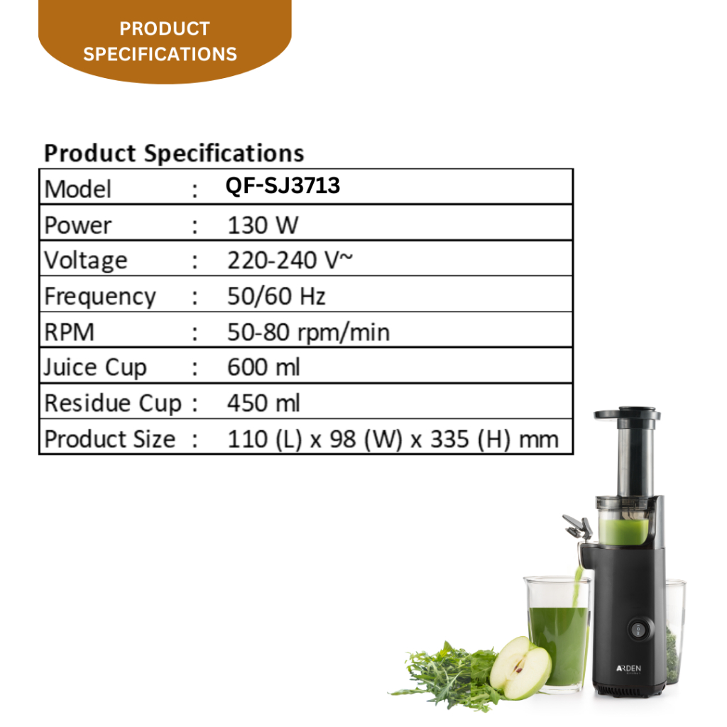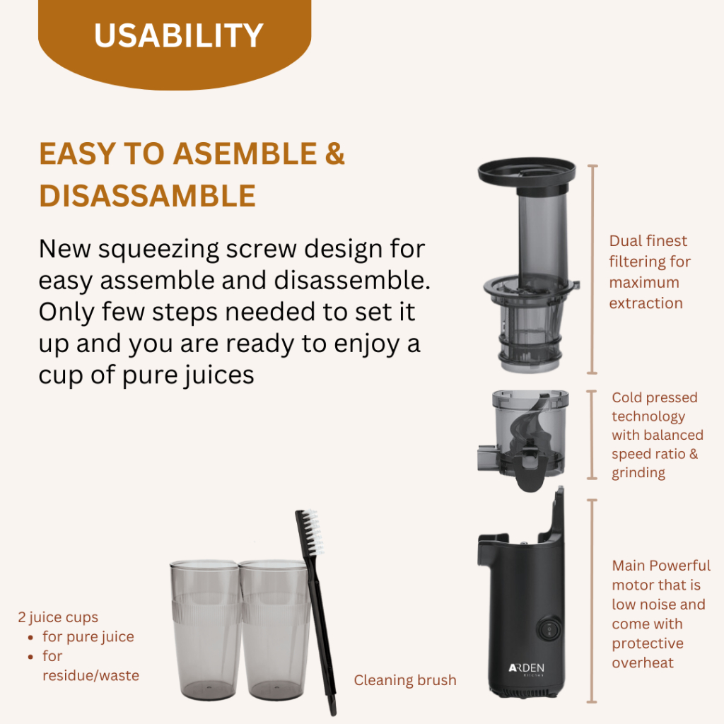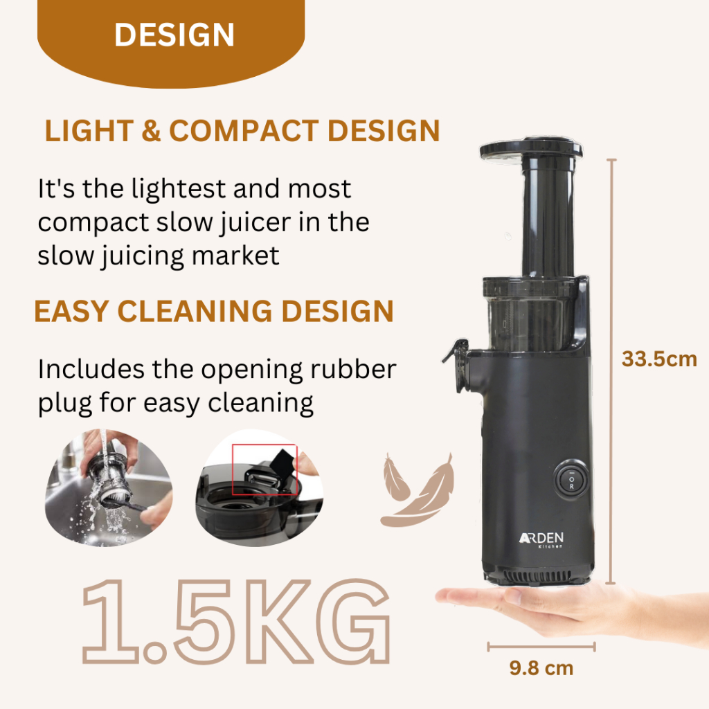 [Local warranty] Arden Cold Press Slow Juicer Easy to Clean, Pulp Measuring Cup, Less Oxidation