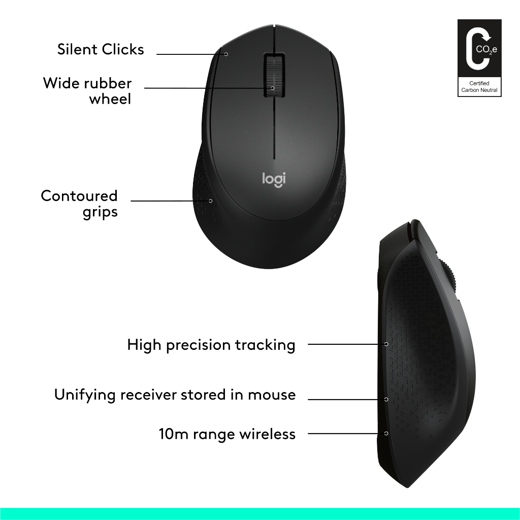 Logitech M330 SILENT PLUS Wireless Mouse, 2.4GHz with USB Nano Receiver, 1000 DPI Optical Tracking, 2-year Battery Life