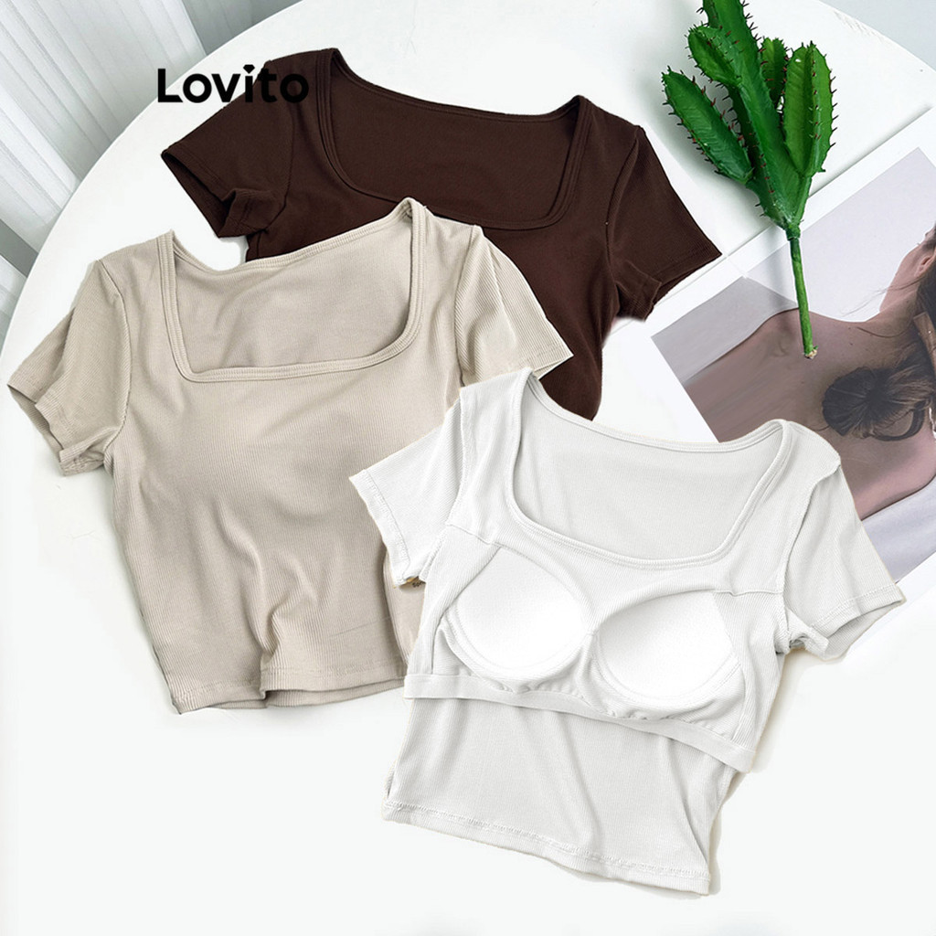 Lovito Casual Plain Basic T-Shirt for Women LNE24089 (Multi-color)