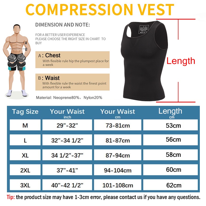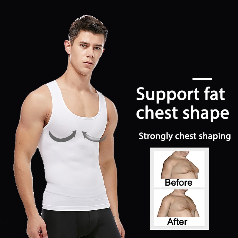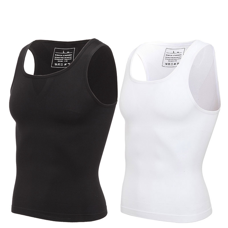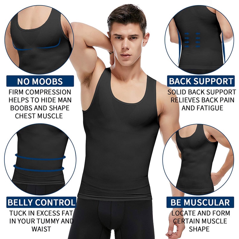【M-3XL】Men's Body Slimming Shaper Compression Shirt Fitness Vest Abdominal Exercise Stretch Fabric Back Support shapewear tank tops