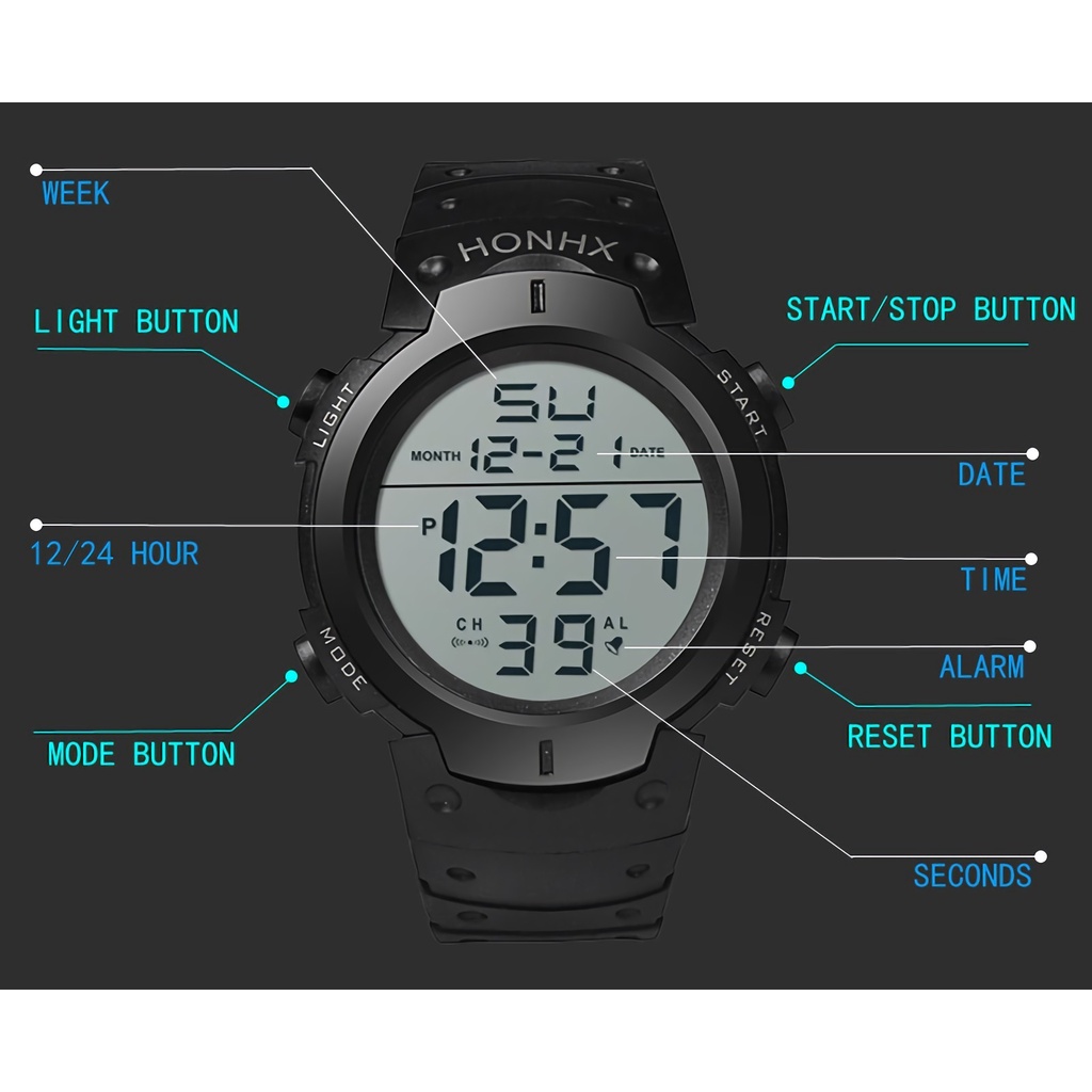 Men Watch Waterproof Silicone LED Digital Stopwatch Date Rubber Sport Wrist Watches