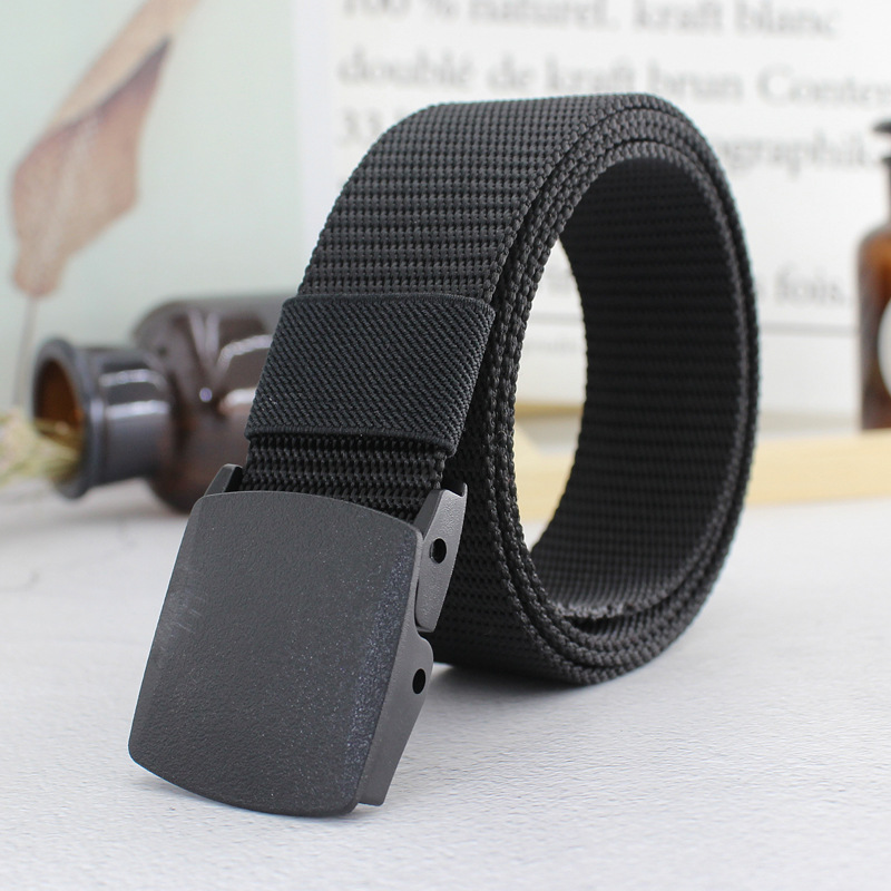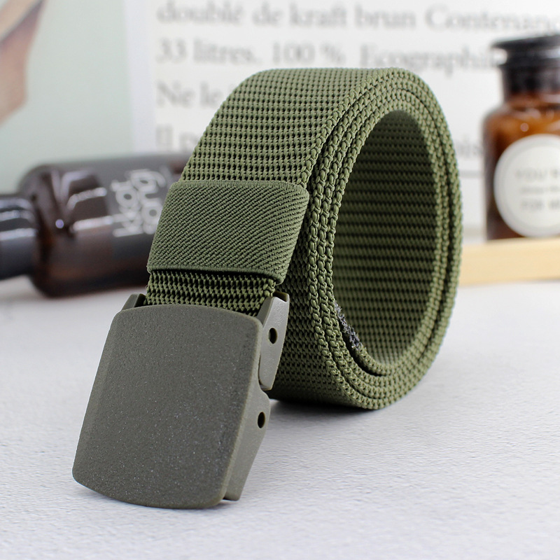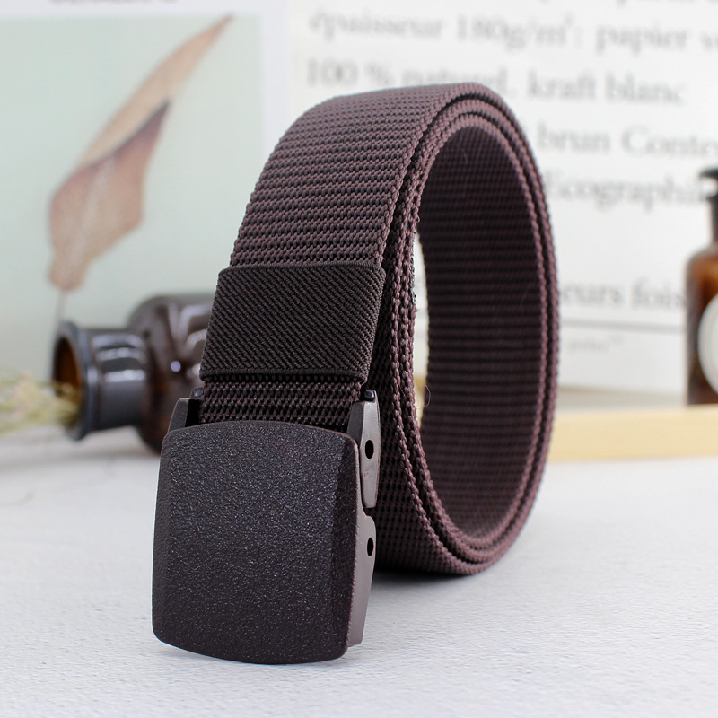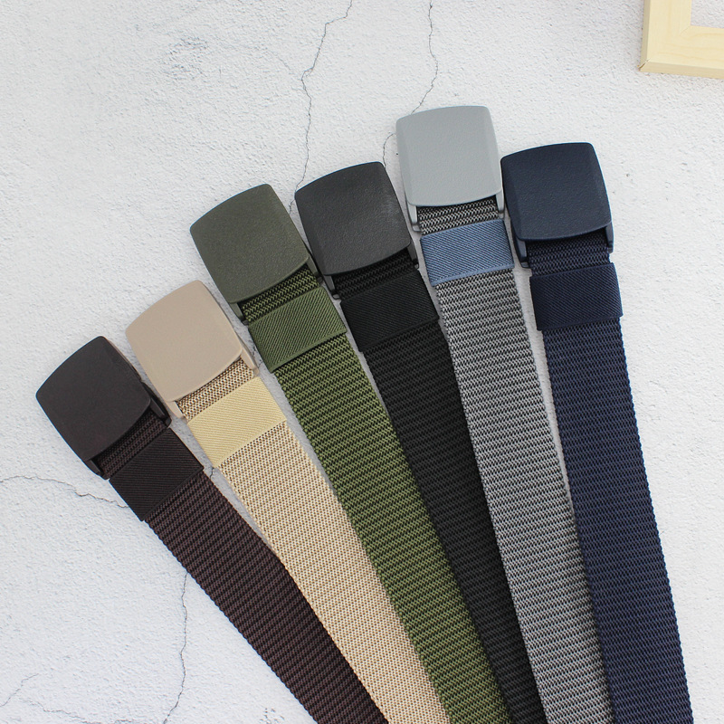 Men Women Plastic Automatic Buckle Canvas Belt Student Military Training Belt