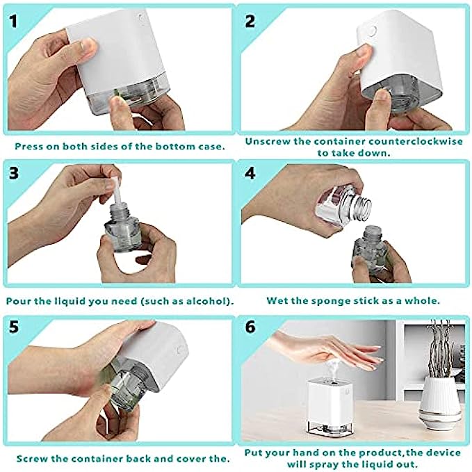 • ❤️Portable: Leak-proof and lightweight, It can be carried in your bag and used anywhere.360-degree sanitizer spray, efficient sterilization. The transparent bottom case lets you know when to refill the 50ml capacity water tank. FCC certified, RoHS approved.