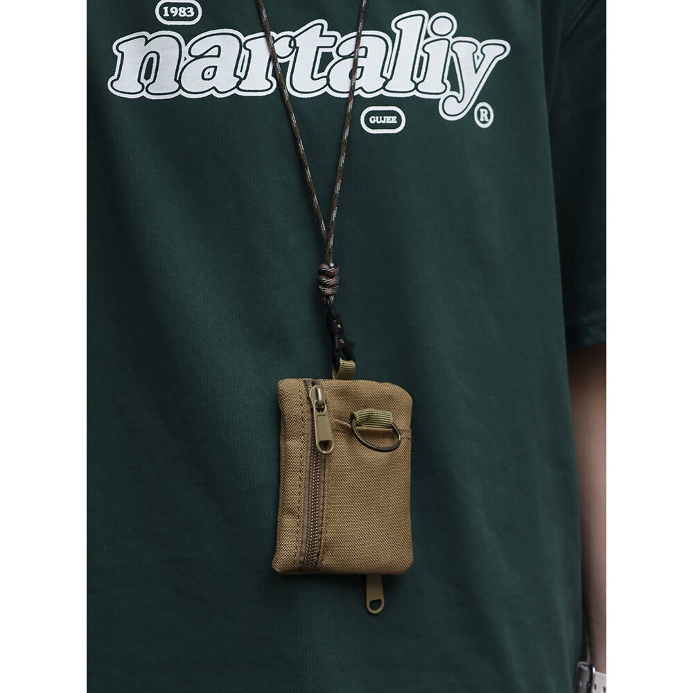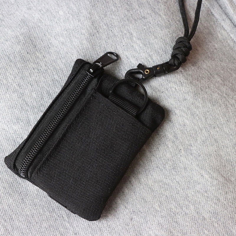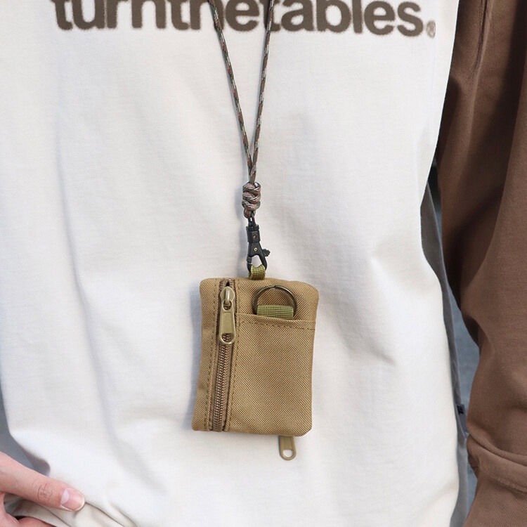 Original Japanese Casual Canvas Hanging Neck Mini Coin Card Holder Zipper Pouch Men and Women ins Key Small Bag with Lanyard