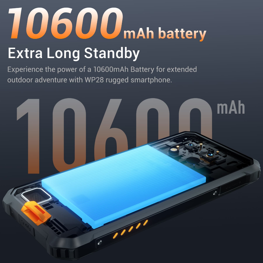 Oukitel WP28 Rugged Smartphone 6.52‘' HD+ 10600mAh 15GB+256GB Android13 Mobile Phone 48MP Camera Cell Phone