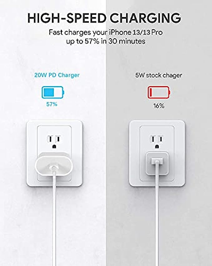 • High-Speed Charging: IPREMIUM 20W USB-C Power Adapter provides 20W power to fast charge at full speed for new iPhone 13/ 13 Pro Max, or other USB-C devices that support USB Power Delivery. up to 3× faster than the original 5W iPhone Charger.