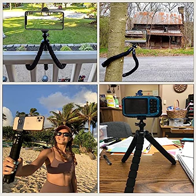 • 【Flexble Tripod】Design of OCTOPUS legs can be twisted into any shape, wrap it on tree, bike, lamp, chairfor extra variety in shot compositions and framing